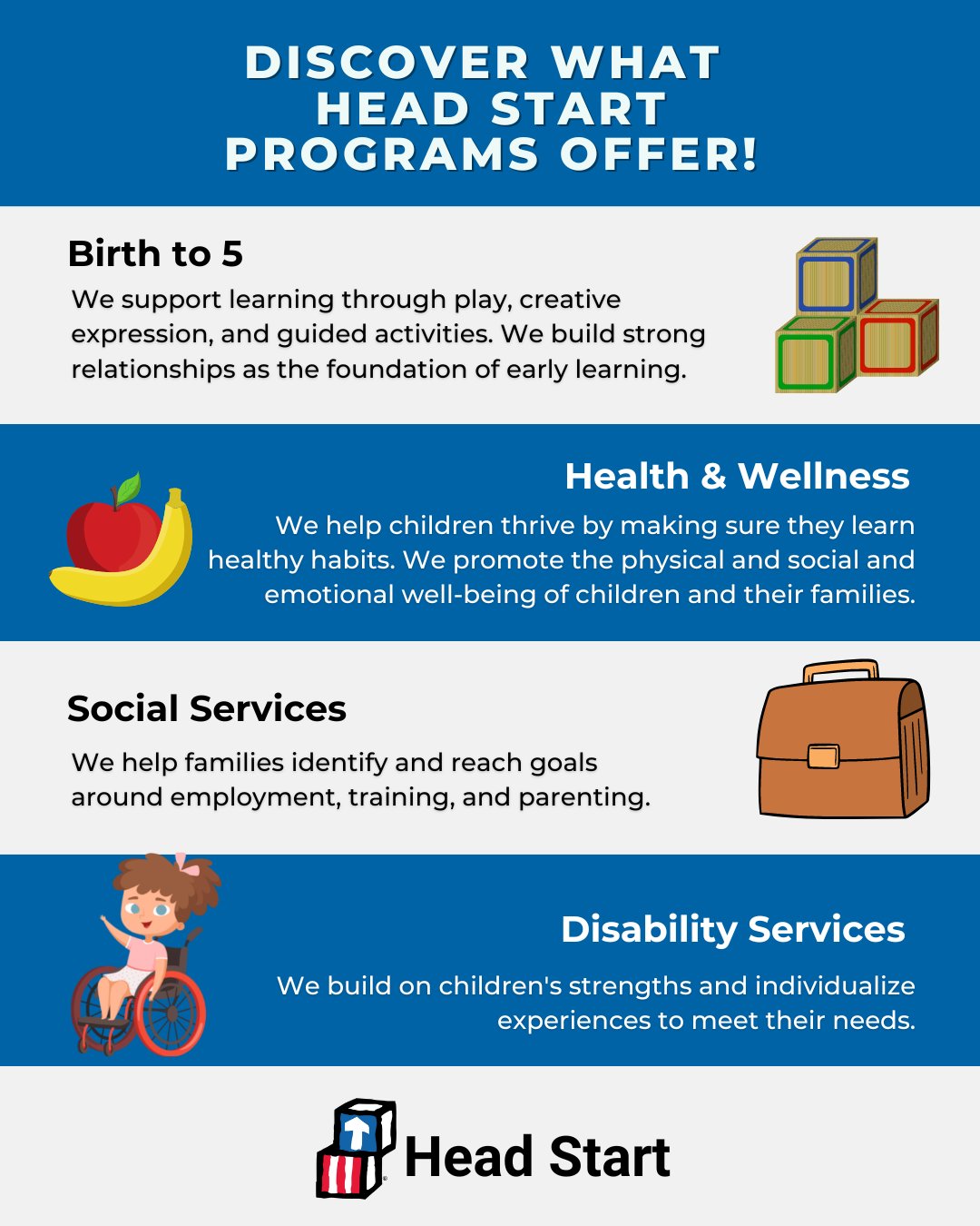 Early Head Start provides comprehensive child and family development services for low. The Early Head Start and Head Start Programs provide education services to families working or enrolled in school and residing.